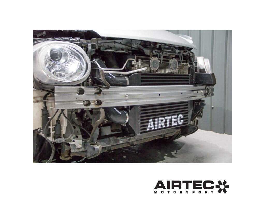 Sériové řešení s bočně umístěným intercoolerem je omezeno velikostí a umístěním, které výrazně limituje proudění vzduchu. Řešením AIRTEC Motorsport je využití prostoru za předním nárazníkem a vývoj výrazně většího předního intercooleru. Výsledkem je přímá náhrada, která je téměř dvakrát vyšší a o více než 50 % širší než originální intercooler. Celková kapacita se zvyšuje o 5,3 litru, což představuje nárůst o 133 % oproti sériovému řešení.