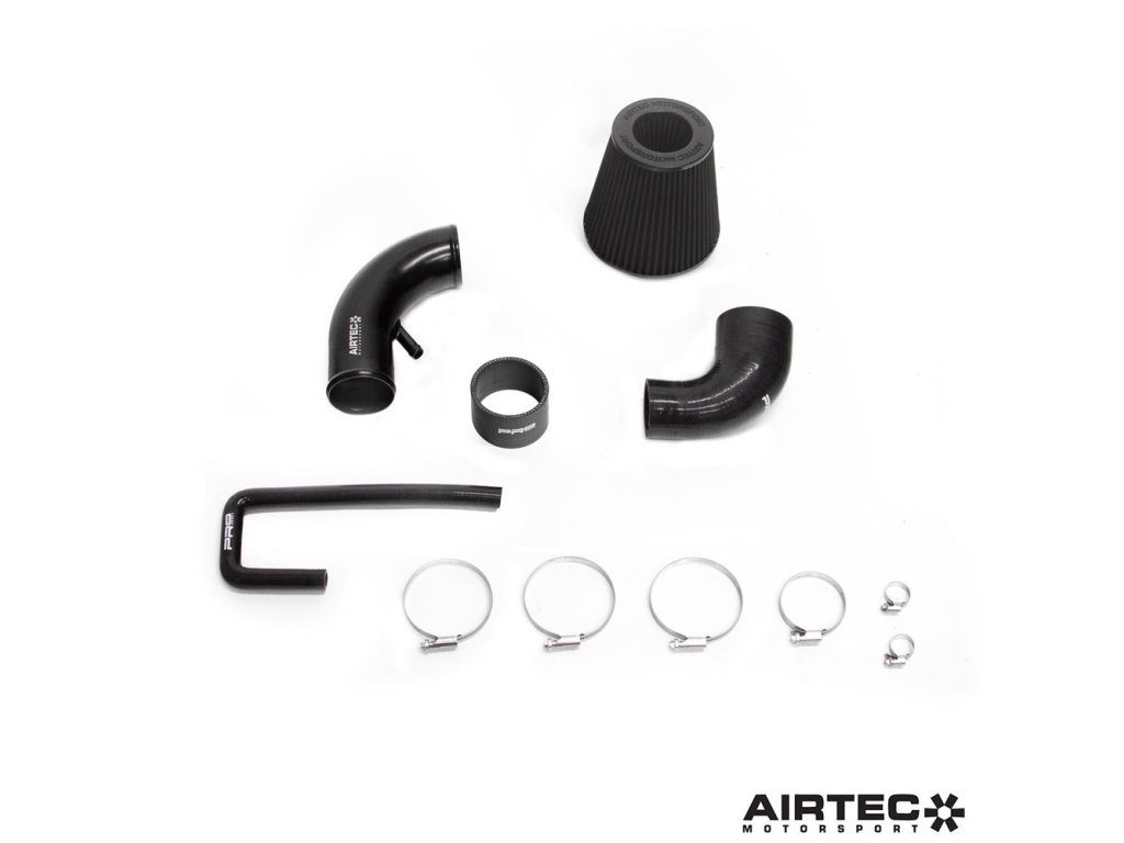 Kit je dodáván s filtrem AIRTEC Motorsport a obsahuje hliníkové sací potrubí a dvě kvalitní silikonové hadice Pro Hoses. Systém zajišťuje lepší průtok vzduchu, rychlejší odezvu turba a výraznější zvuk sání.