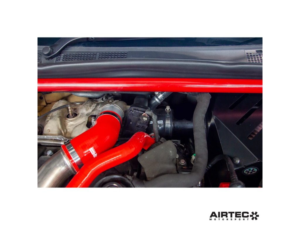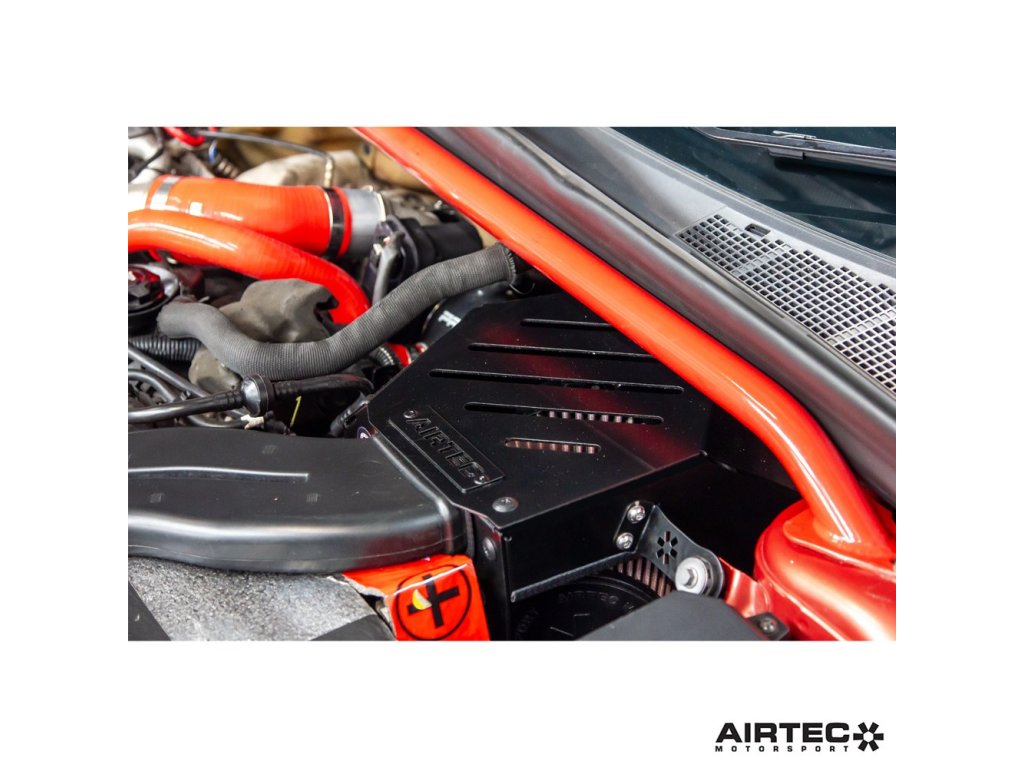 Tento kit je jako jediný na trhu řešen jako kompletní náhrada celého potrubí – od přívodu vzduchu až po vstup do turbodmychadla. Součástí je zvětšená příruba s optimalizovaným průtokem, která se montuje přímo na vstup turba místo originálního dílu. Na ni navazuje zvětšená silikonová sací hadice Pro Hoses, následně hliníkové sací potrubí a velký bavlněný vzduchový filtr. Ten je uzavřen ve čtyřdílném boxu, do kterého je přiváděn stálý přísun čerstvého vzduchu z originálních přívodů.