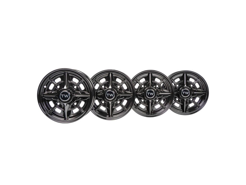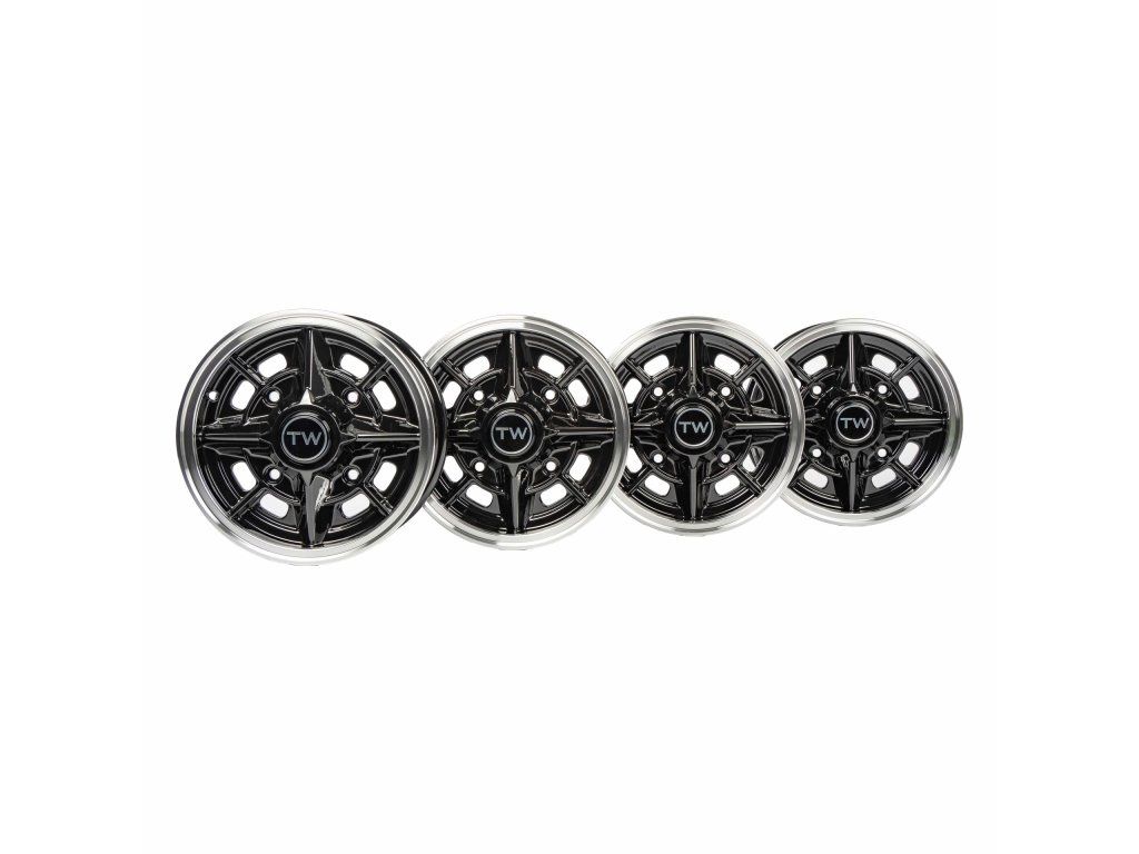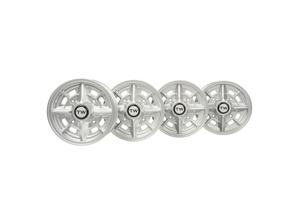 Sada kol 5x13 ET25, rozteč 4x160, skládající se ze 4 kusů sportovních kol pro Trabant TWrace1 – nová interpretace sportovního kola ADMV v hliníkovém provedení. Díky hmotnosti 4,5 kg je téměř shodná s původní hořčíkovou verzí z motorsportu bývalé NDR.