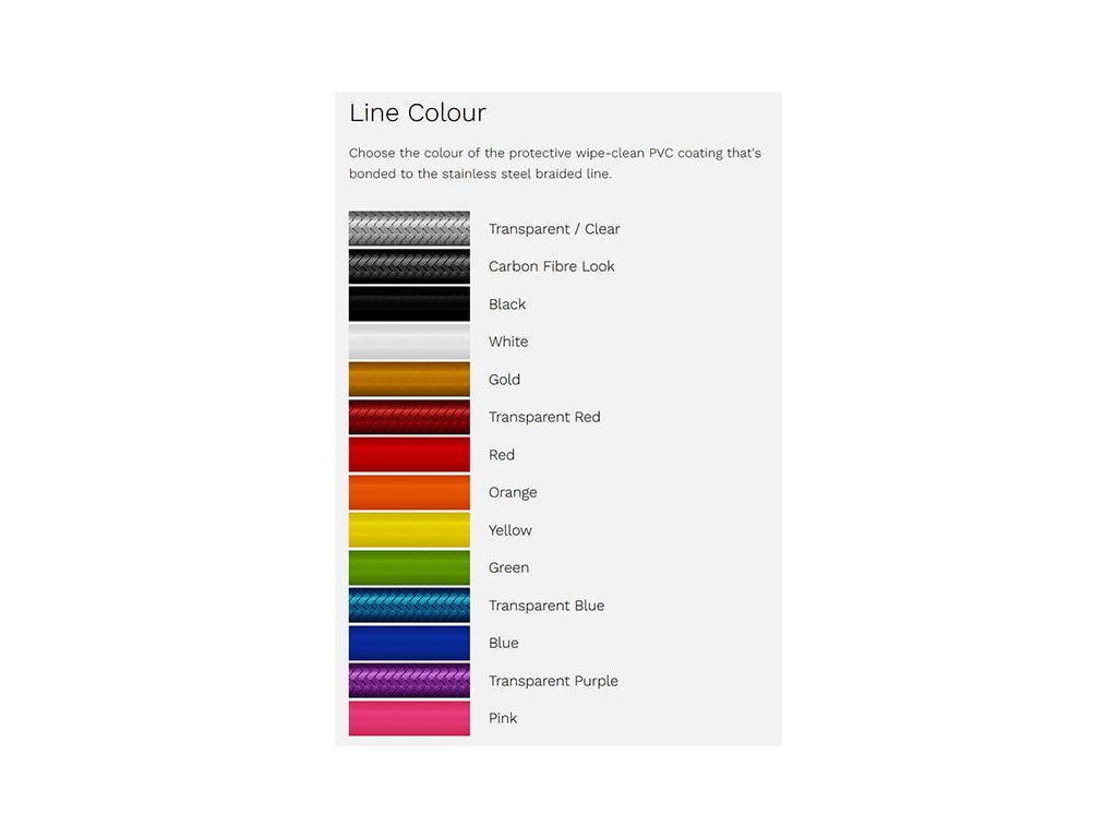 Hadice jsou standardně dodávány ve průhledném (stříbrném) provedení, ale v případě zájmu je možnost volby barvy na zakázku.