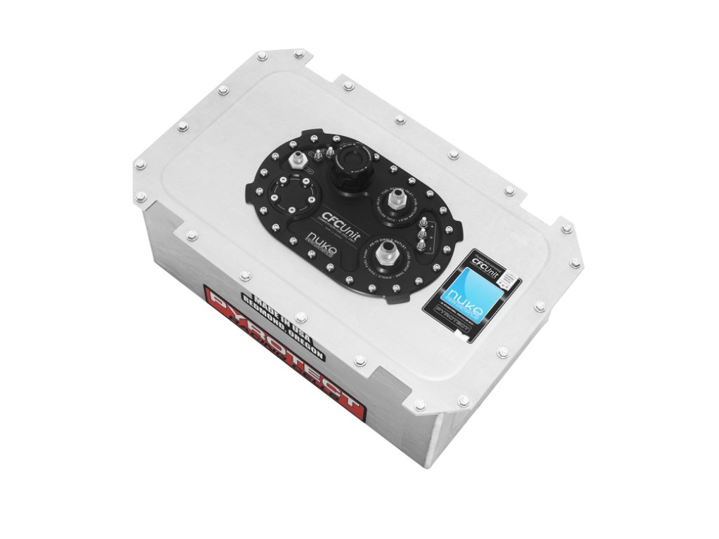 Jedinečná jednotka CFC od společnosti Nuke Performance funguje jako náhrada tankovací vrchní desky se standardizovanými rozměry a roztečí šroubů 6x10"-24. CFC Unit je tedy dokonalým řešením pro zefektivnění vysoce výkonných palivových systémů, kde je bezpečnost na prvním místě. Integrovaná drop-in vyrovnávací nádrž (surge tank) eliminuje potřebu instalace další externí vyrovnávací nádrže, což je nejen komplikované vzhledem k prostoru v závodním voze, ale i drahé z důvodu nutnosti koupě další nádrže, fitinek, hadice atd. S touto jednotkou tedy nepotřebujete žádné další externí komponenty, jen nainstalujete ponorná čerpadla a fungujete. To uvolňuje prostor, snižuje hmotnost a zvyšuje bezpečnost, protože je potřeba méně spojů palivového potrubí a nejsou používána žádná externí palivová čerpadla. Díky své jedinečné konstrukci je to nejlehčí palivová jednotka na trhu, což jsou opět další drahocenné gramy k dobru.