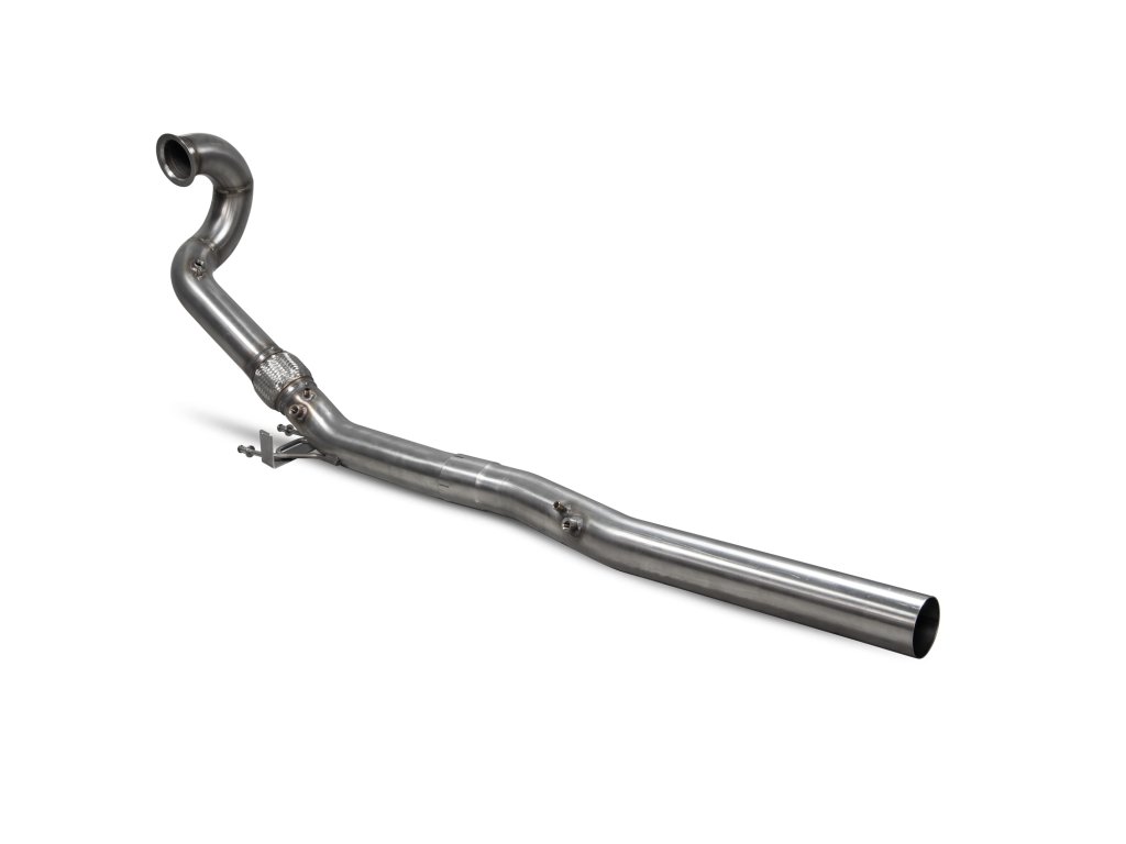 De-cat downpipe (GPF odstraněn) od anglické firmy Scorpion pro Audi S3 8V GPF / Golf R MK7,5 Facelift GPF / Golf R Estate MK7,5 GPF / Seat Leon Cupra ST 4Drive Facelift GPF. Všechny produkty této společnosti jsou vyráběny ručně ve Velké Británii a jsou využívány v závodních šampionátech BTCC, VW Cup, Mini Challenge a dalších.