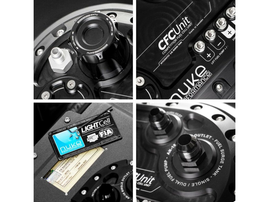 Vyvinuto ve spolupráci s motorsportovými týmy z celého světa, díky nimž se CFC jednotky a celý sotiment Nuke Performance stal ikonou, jakou je dnes. Úspora hmotnosti je často stejně důležitá jako honba za výkonem a několika zákazníkům se podařilo ušetřit více než 10 kg přechodem na kompaktní a lehké řešení Nuke Performance. Nuke Performance CFC Unit - Competition Fuel Cell Unit s integrovanou surge tank nádrží se perfektně hodí pro aftermarketové závodní nádže a je navržena, vyvinuta a vyrobena ve Švédsku v nejvyšší možné kvalitě, se stejným puncem kvality jako ostatní díly v lehké motorsportové řadě Nuke Performance.