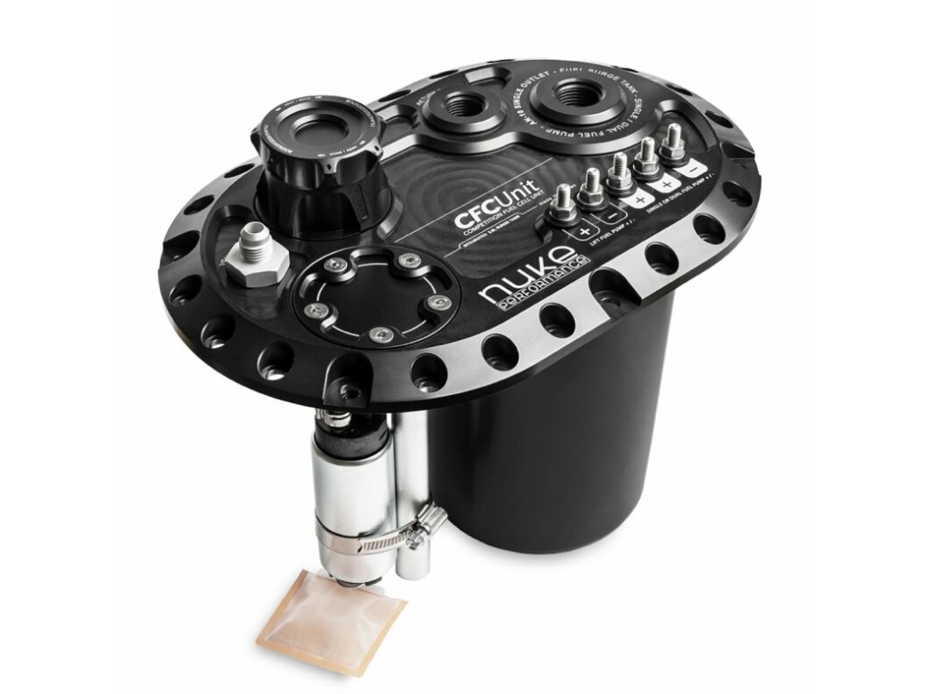 Jedinečná jednotka CFC od společnosti Nuke Performance funguje jako náhrada tankovací vrchní desky se standardizovanými rozměry a roztečí šroubů 6x10"-24. CFC Unit je tedy dokonalým řešením pro zefektivnění vysoce výkonných palivových systémů, kde je bezpečnost na prvním místě. Integrovaná drop-in vyrovnávací nádrž (surge tank) eliminuje potřebu instalace další externí vyrovnávací nádrže, což je nejen komplikované vzhledem k prostoru v závodním voze, ale i drahé z důvodu nutnosti koupě další nádrže, fitinek, hadice atd. S touto jednotkou tedy nepotřebujete žádné další externí komponenty, jen nainstalujete ponorná čerpadla a fungujete. To uvolňuje prostor, snižuje hmotnost a zvyšuje bezpečnost, protože je potřeba méně spojů palivového potrubí a nejsou používána žádná externí palivová čerpadla. Díky své jedinečné konstrukci je to nejlehčí palivová jednotka na trhu, což jsou opět další drahocenné gramy k dobru.