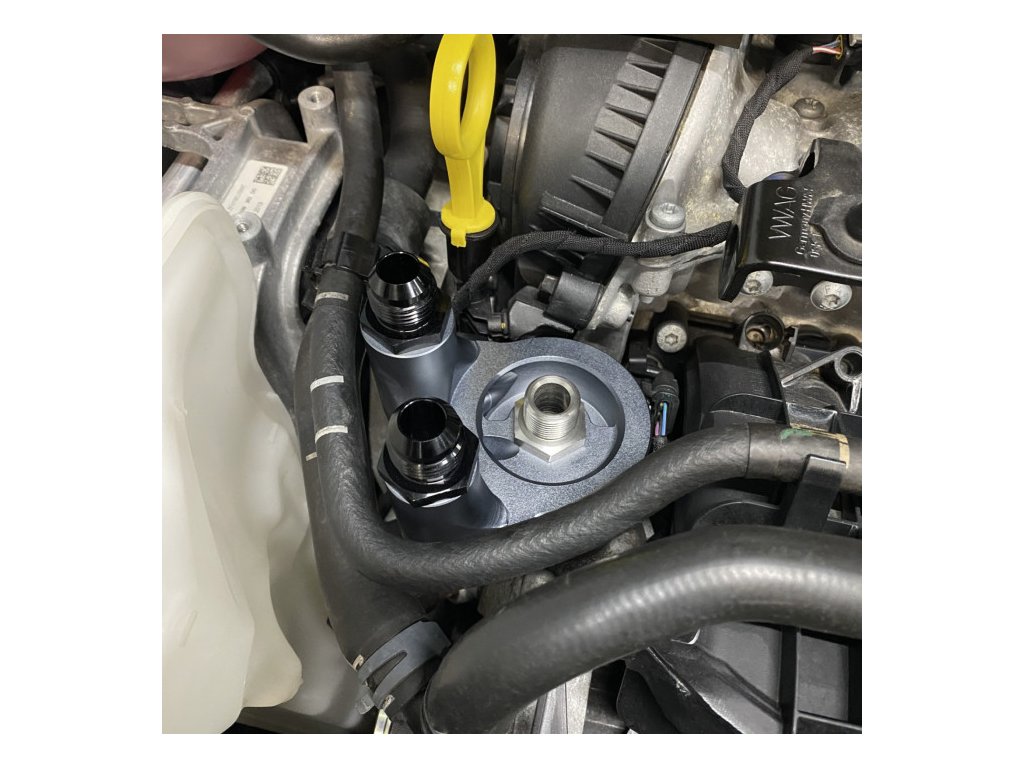 Díky předem smontovaným opleteným hadicím a hliníkovým fitinkům obsahuje tato komplexní sada vše potřebné pro jednoduchou instalaci. Pomocí vysokoprůtokových hadic AN10 pro vedení oleje z a do externího chladiče je sada vybavena také 90° přídavnou destičkou pod olejový filtr a distanční podložkou, která obsahuje vestavěný termostat. Ten zajišťuje, že olej začne proudit do externího chladiče teprve při dosažení požadované teploty (92 °C / 198 °F).