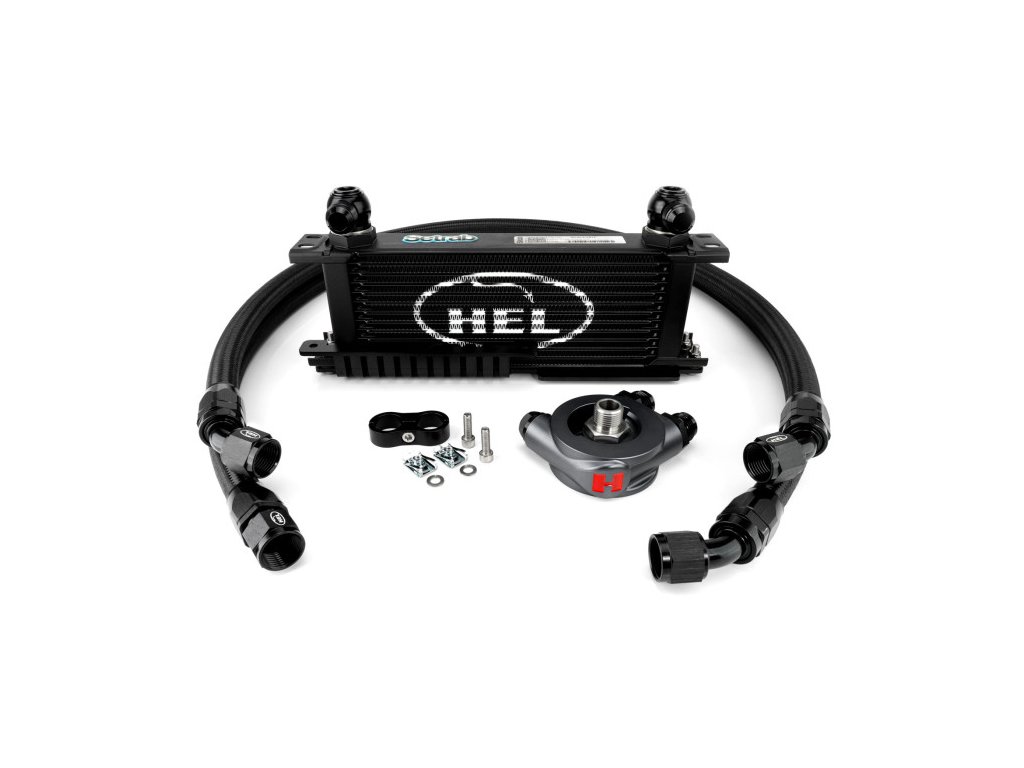 Tato kompletní sada je dodávána s předem sestavenými opletenými hadicemi HEL a eloxovanými hliníkovými fitinky. Vysoce průtočné AN10 hadice odvádějí a vracejí olej mezi chladičem a termostatickou sandwich podložkou Mocal nastavenou na 92 °C (197,6 °F). Ukázalo se, že tato teplota aktivace je ideální — poskytuje maximální chlazení, když je potřeba, a zároveň umožňuje bezpečné zahřátí motoru. Příliš studený olej je rovněž nebezpečný, a termostat tak udržuje teplotu pod kontrolou s vysokou přesností.