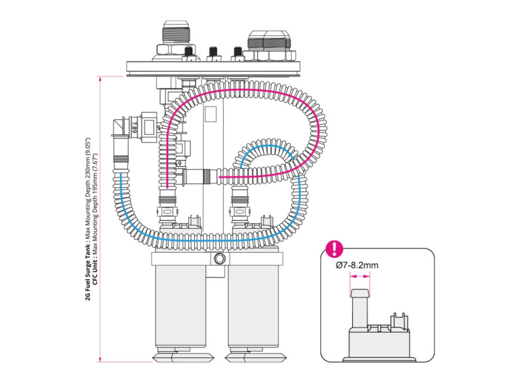 Systém propojená palivových pump pro všechny druhy paliv včetně etanolu. Vybavený SAE rychlospojkami je tento systém vhodný pro motorsport, zajišťuje snadnou údržbu a dlouhou životnost palivového systému. Tato sada palivových hadic do nádrže splňuje nejvyšší standardy pro motorsport a je tedy ideální pro rychlou, bezpečnou a stabilní montáž vysokotlakých palivových pump od Aeromotive, AEM, Deatschwerks, Ti Automotive (Walbro) a dalších.