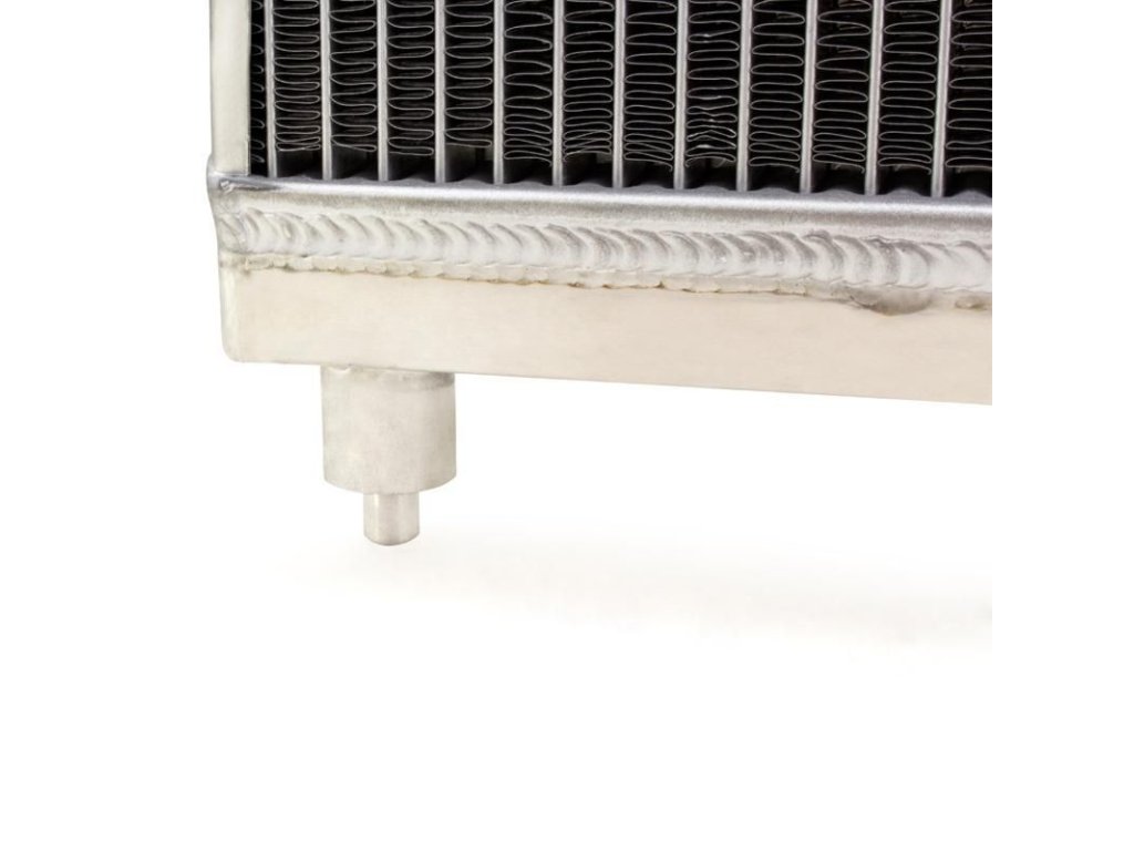 All Hybrid Racing radiators feature dual core, all-aluminum construction with high-precision TIG welds. This radiator integrates the necessary ports for the Coolant Temperature Sending Unit and the Fan Switch, eliminating the need for special adapters and inserts.