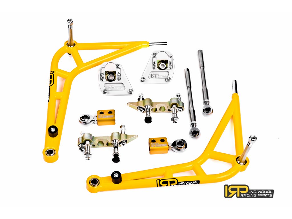 Sada pro zvětšení rejdu – nebo jak ji chcete nazývat – která vám umožní správně driftovat, se u Individual Racing Parts jednoduše nazývá drift kit. Nejjednodušší cestou zvýšíte možnosti nastavení podvozku, úhel natočení kol a pevnost předních spodních ramen. S IRP drift kitem bude váš vůz schopen nastavit přední kola do mnohem rovnoměrnějšího natočení pro driftování, než s jakým počítali výrobci pro běžné silniční použití. Navrženo speciálně pro drift a precizně vyrobeno pro dokonalost vašeho závodního vozu!