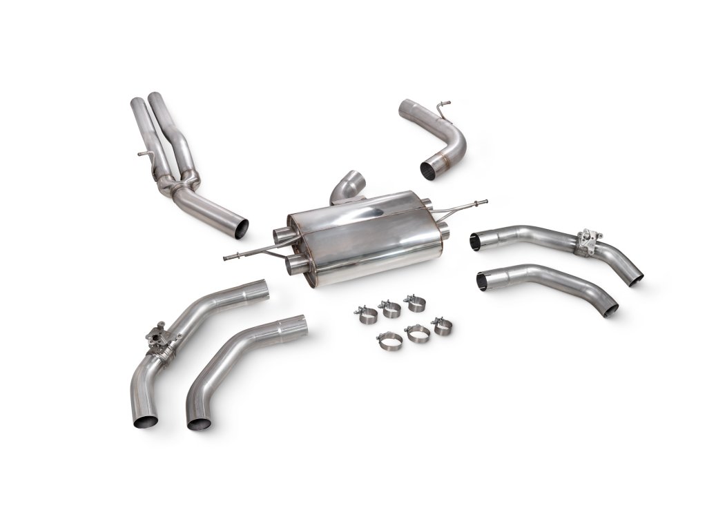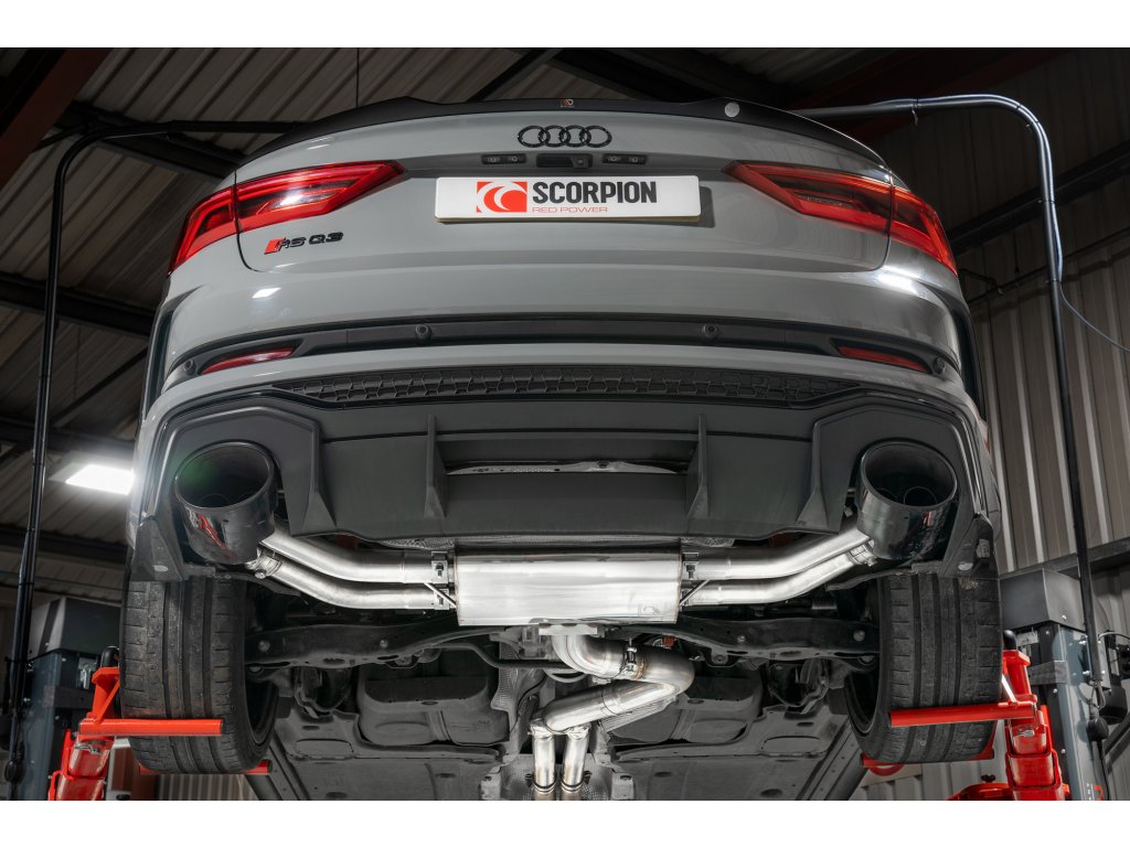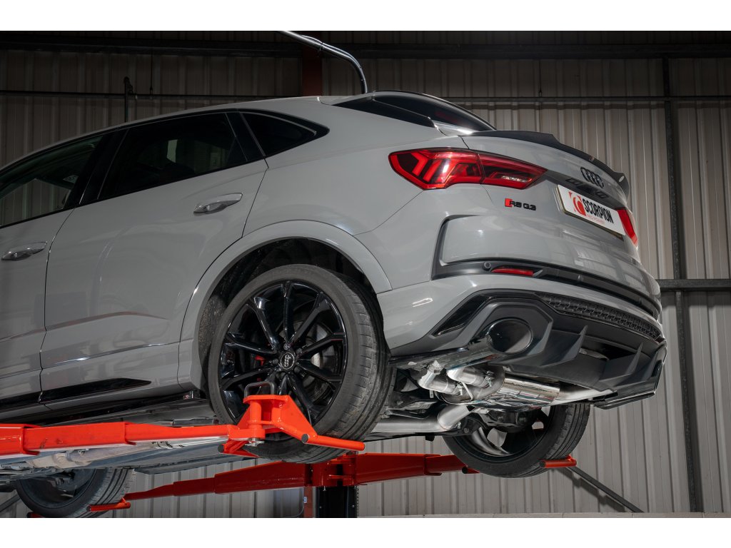 Non-res gpf-back výfuk s klapkami od anglické firmy Scorpion pro Audi RSQ3 (F3). Všechny produkty této společnosti jsou vyráběny ručně ve Velké Británii a jsou využívány v závodních šampionátech BTCC, VW Cup, Mini Challenge a dalších.