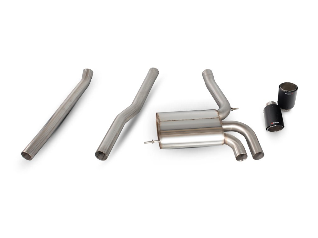 Non-resonated cat-back výfuk od anglické firmy Scorpion pro Mini Cooper S F56 3-dvéř bez GPF. Všechny produkty této společnosti jsou vyráběny ručně ve Velké Británii a jsou využívány v závodních šampionátech BTCC, VW Cup, Mini Challenge a dalších.