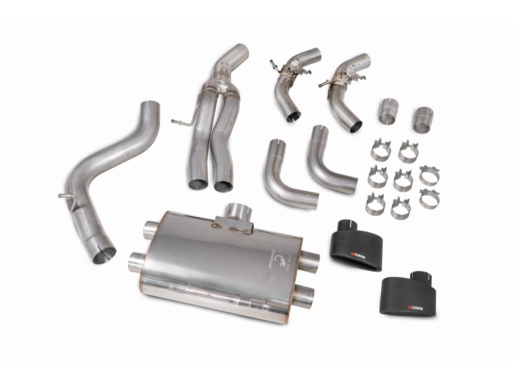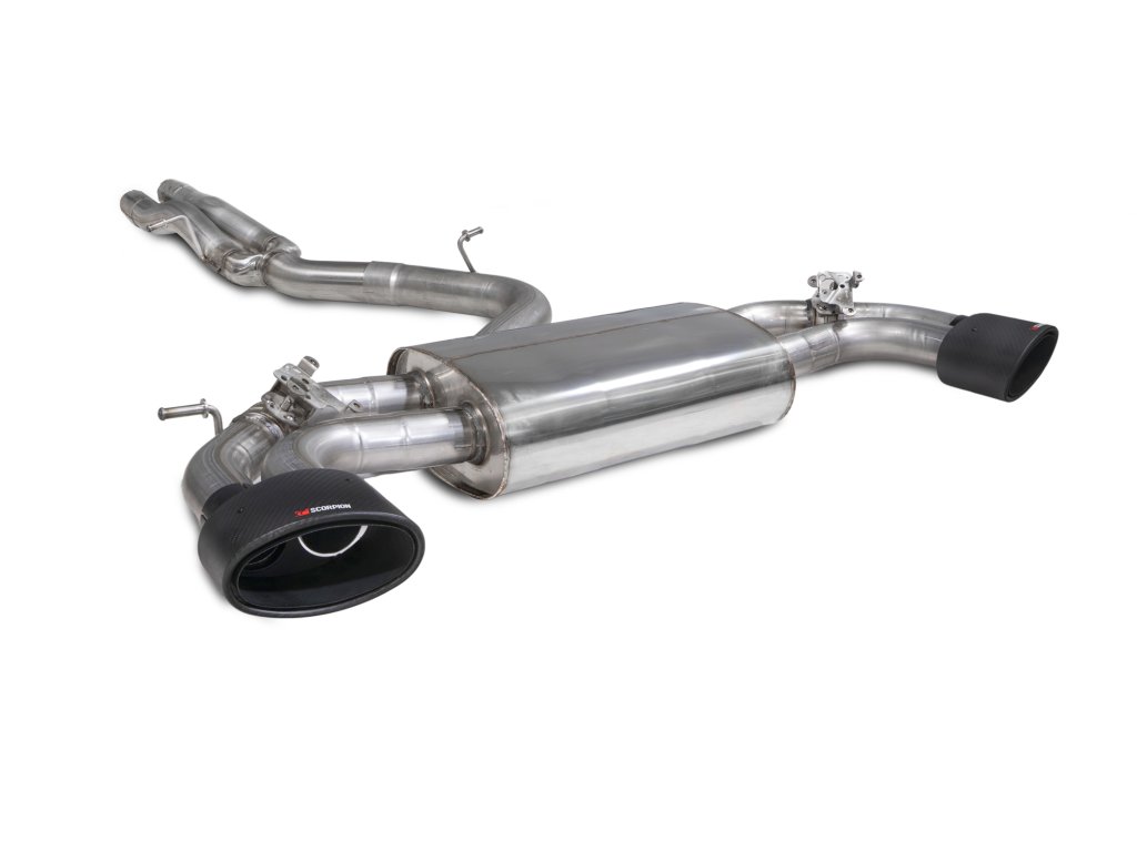 Non-resonated cat/gpf-back výfuk s klapkami od anglické firmy Scorpion pro Audi RS3 Saloon 8V (GPF a Non-GPF models). Všechny produkty této společnosti jsou vyráběny ručně ve Velké Británii a jsou využívány v závodních šampionátech BTCC, VW Cup, Mini Challenge a dalších.