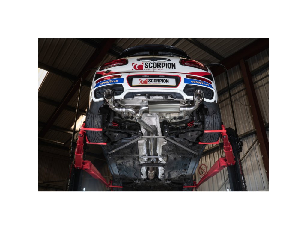 Resonated Cat-back výfuk od anglické firmy Scorpion pro Mini Clubman F54 Cooper S 19-24 bez GPF. Všechny produkty této společnosti jsou vyráběny ručně ve Velké Británii a jsou využívány v závodních šampionátech BTCC, VW Cup, Mini Challenge a dalších.