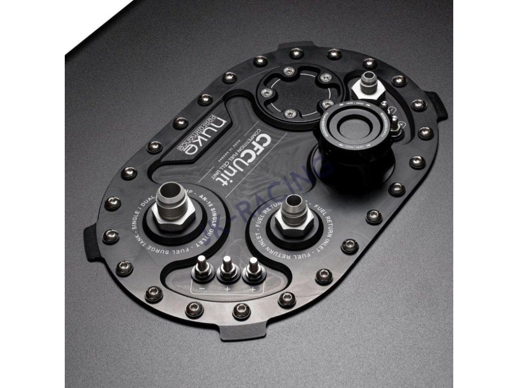 Jedinečná jednotka CFC od společnosti Nuke Performance funguje jako náhrada tankovací vrchní desky se standardizovanými rozměry a roztečí šroubů 6x10"-24. CFC Unit je tedy dokonalým řešením pro zefektivnění vysoce výkonných palivových systémů, kde je bezpečnost na prvním místě. Integrovaná drop-in vyrovnávací nádrž (surge tank) eliminuje potřebu instalace další externí vyrovnávací nádrže, což je nejen komplikované vzhledem k prostoru v závodním voze, ale i drahé z důvodu nutnosti koupě další nádrže, fitinek, hadice atd. S touto jednotkou tedy nepotřebujete žádné další externí komponenty, jen nainstalujete ponorná čerpadla a fungujete. To uvolňuje prostor, snižuje hmotnost a zvyšuje bezpečnost, protože je potřeba méně spojů palivového potrubí a nejsou používána žádná externí palivová čerpadla. Díky své jedinečné konstrukci je to nejlehčí palivová jednotka na trhu, což jsou opět další drahocenné gramy k dobru.