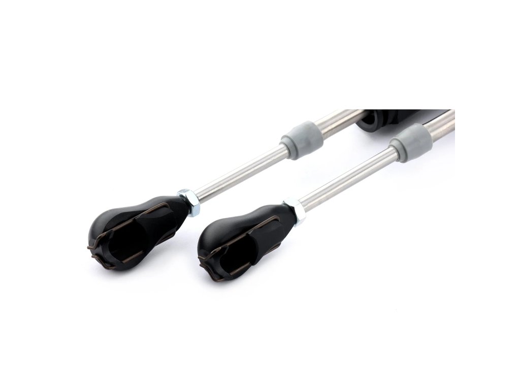 - Solid rod ends and spherical bearings (not rubber like OEM cables).