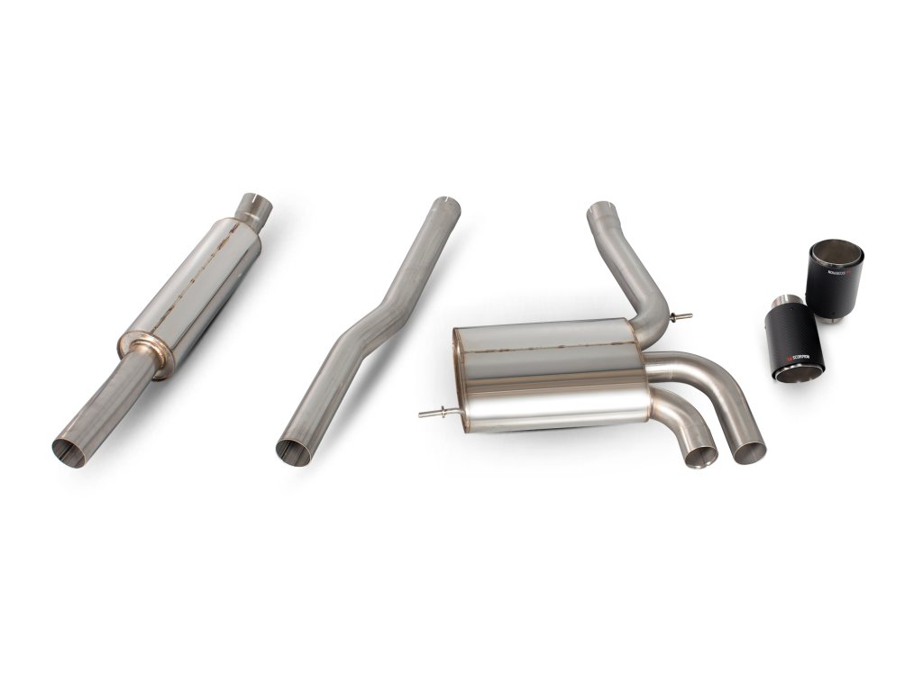 Resonated cat-back výfuk od anglické firmy Scorpion pro Mini Cooper S F56 3-dvéř bez GPF. Všechny produkty této společnosti jsou vyráběny ručně ve Velké Británii a jsou využívány v závodních šampionátech BTCC, VW Cup, Mini Challenge a dalších.