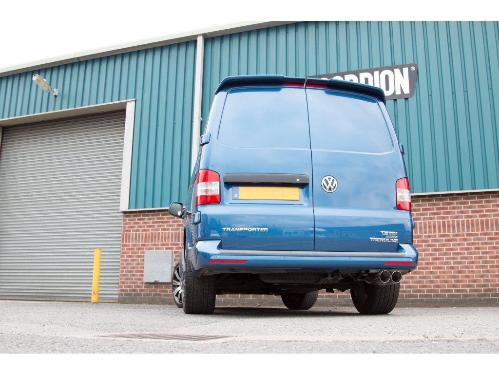 Resonated cat/DPF-back výfuk Scorpion pro Volkswagen Transporter T5 2,5TDi (03-09) / T5 2,0 (10-15) / T5 & T6 2,0 BiTDi (15-19) SWB/LWD 2WD Daytona (twin) stříbrná