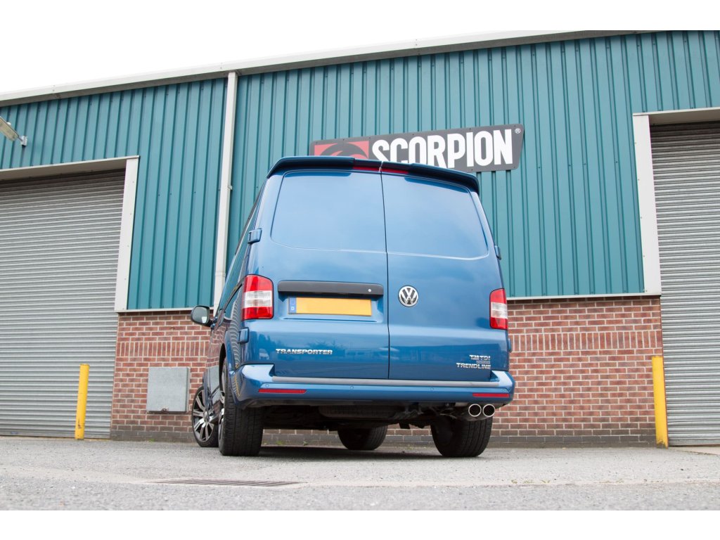 Resonated cat/DPF-back výfuk Scorpion pro Volkswagen Transporter T5 2,5TDi (03-09) / T5 2,0 (10-15) / T5 & T6 2,0 BiTDi (15-19) SWB/LWD 2WD Monaco (twin) stříbrná