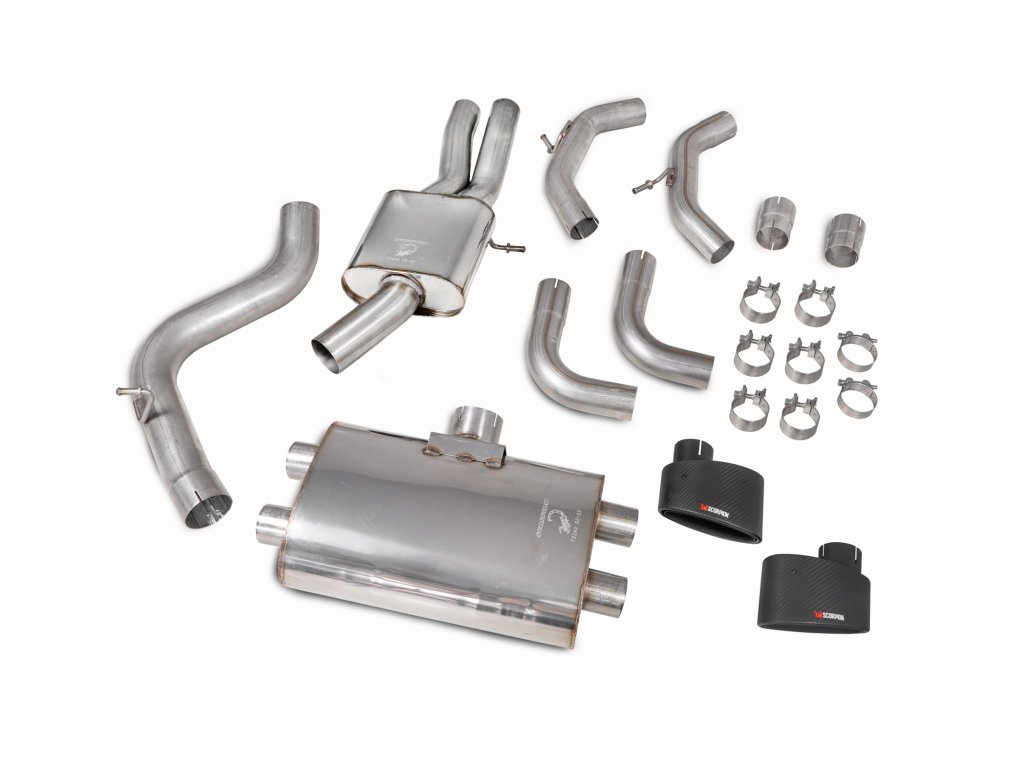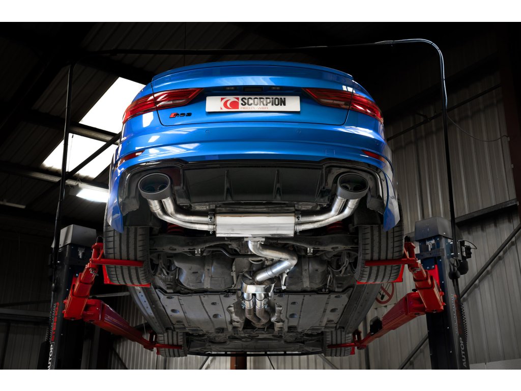 Resonated cat/gpf-back výfuk bez klapek Scorpion pro Audi RS3 Saloon 8V (GPF a Non-GPF models) Ascari EVO stříbrná