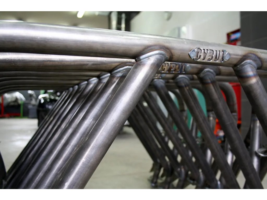 Vyrobeno z přesných bezešvých trubek E355 o průměru 45×2,5 a 40×2 a laserem řezaného ocelového plechu ohýbaného na CNC stroji. Svařováno zkušeným svářečem.