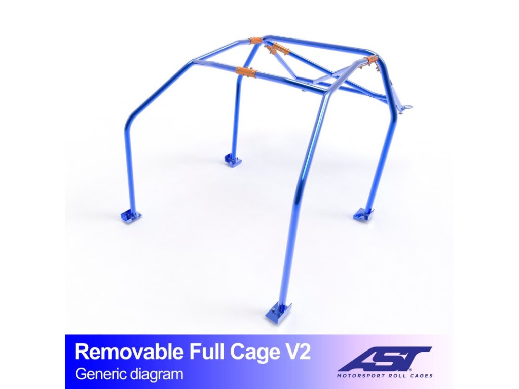 AST Odstranitelný celorám V2 roll klec s 6 body k karoserii, šroubované na 6 výztužných desek svařených ke karoserii. Tyto výztužné desky jsou vyrobeny z 3mm silné oceli a jsou navrženy a vyrobeny speciálně pro každý vůz, dosahují maximální bezpečnosti a přizpůsobení na podvozku. Roll klec je dodána svařená a nepobarvená a skládá se z hlavní části o průměru 45mm v oceli E355, zbytek konstrukce je vyroben z oceli o průměru 40mm v oceli E355. Konstrukce je rozdělena do několika sekcí, aby umožnila snadnější montáž ve vozidle. Díky naší laserové skenovací technologii zajišťujeme přesný 3D design, který se hodí do vašeho vozidla. V ceně tohoto článku jsou zahrnuty: - Svařená roll klec - Spojovací části - výztužné desky - Šrouby, matice a náušnice - Individuální dokumentace - Instalační manuál - Sada samolepek * Poradíte se s vaší Federací / Sportovní organizací minimálními bezpečnostními požadavky specifickými pro váš vůz, verzi, motor a typ testu a / nebo šampionátu, který se bude hrát, i když tato roll klec pasuje do všech modelů motorů. * Tyto struktury vyžadují adaptace a / nebo zrušení vnitřních prvků vozidla (palubní deska, dveře, čalounění, zadní sedadla...)ukončení: uložení zadních tlumičů